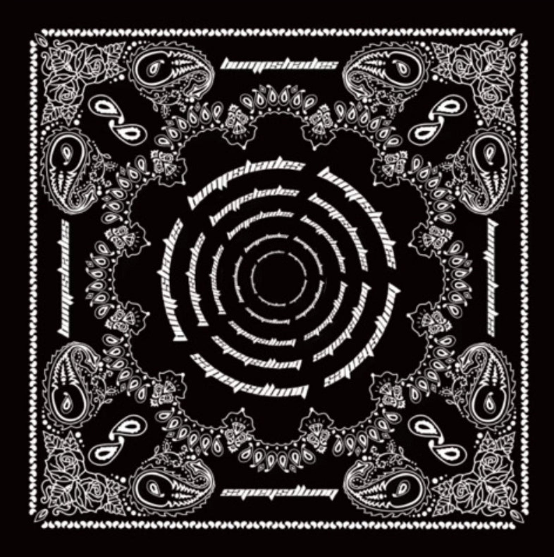 Black bandana with white paisley patterns and 'bumpshades' branding